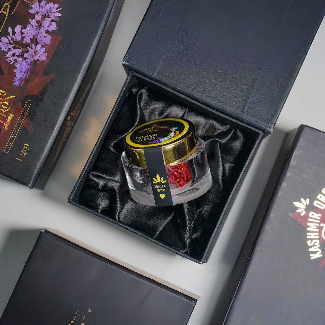 Kashmir organic Premium Saffron, known as the "King of Spices," is a powerhouse of health benefits cherished for centuries. Rich in antioxidants like crocin, crocetin, and safranal, it fights oxidative stress and protects cells from free radical damage.